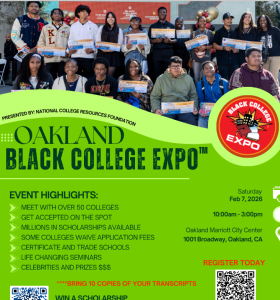 OAKLAND, CA, UNITED STATES, February 5, 2026 /EINPresswire.com/ -- National College Resources Foundation (NCRF), will host its 23rd Annual Oakland Black College Expo™ on Saturday, January 7th, from 10:00 a.m. to 3:00 p.m., at the Oakland Marriott City Center, 1001 Broadway, Oakland, CA. 94607.